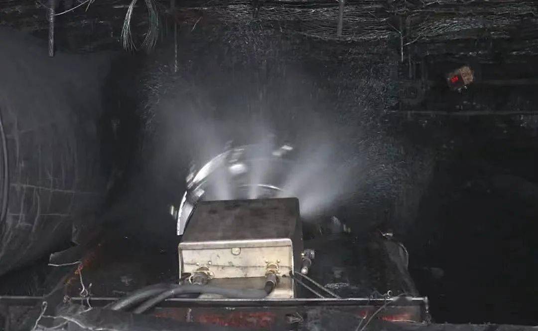 智能“霧龍”除塵器,守好防塵第一關。“今年,我們在掘進機機頭上方安裝了一款智能“霧龍”除塵器,在掘進時可以形成U形濃密霧罩,同時,將它與掘進機后側的移動式捕塵網、聯鎖噴霧進行聯動,當掘進機前“霧龍”開啟時,后面的噴霧和補塵網也跟著一起自動開啟并移動,這樣既減少了人為開啟和移動噴霧,又保障了水霧防塵效果。”通風部防塵負責人楊瑞琪說。